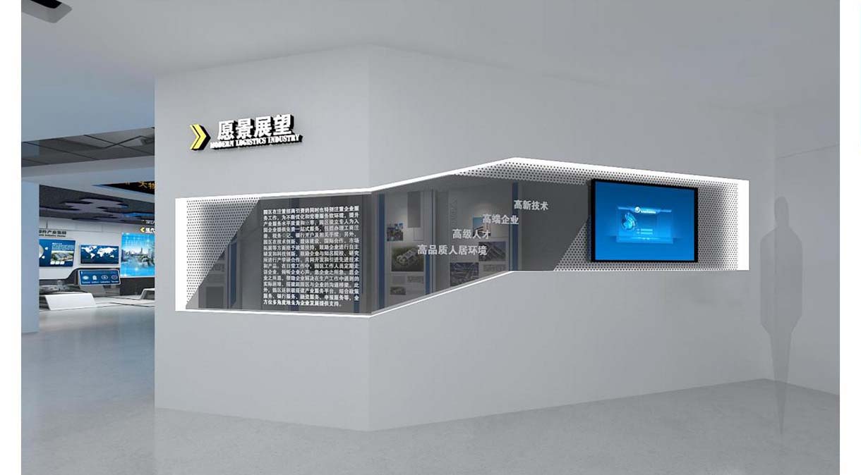 本項目中將采用多個LED顯示屏為內容載體,由PAD系統控制,可逐個點亮LED設備,展示園區各個時間節點的發展大事記,引導客戶逐個觀賞,最終匯集到園區愿景展望區。